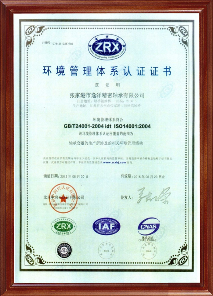 環境管理體系認證證書